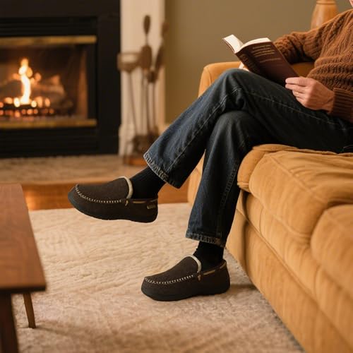 Zigzagger Men's Moccasin Slippers Memory Foam House Shoes, Indoor and Outdoor Warm Loafer Slippers