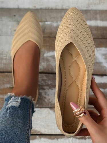 Women's Flats Shoes Pointed Toe Knit Ballet Flats Comfortable Casual Dressy Slip On Flat Work Office Shoes