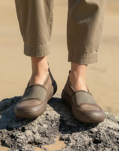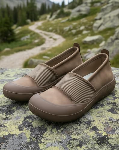 Women's Wide Toe Box Shoes,Barefoot Feel Flats, Slip-On Sneakers for Comfortable Walking and Running,Stylish & Durable Sport Shoes Brown