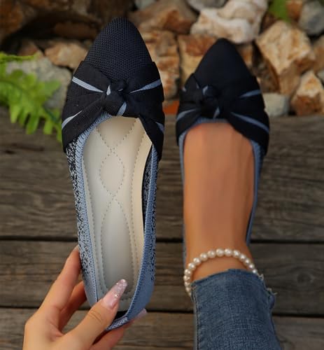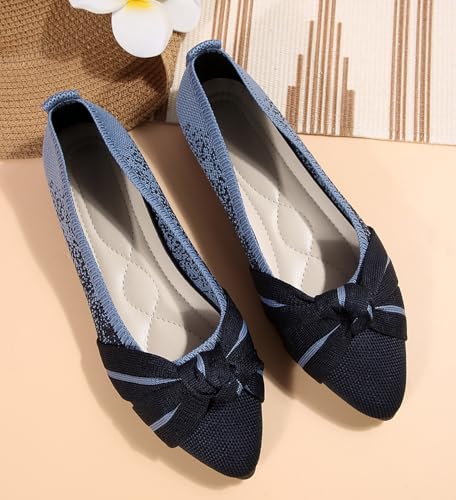 Women's Flats Pointed Toe Bow Knit Ballet Flat Shoes Comfortable Dressy Mesh Slip On Ballerina Flats for Women
