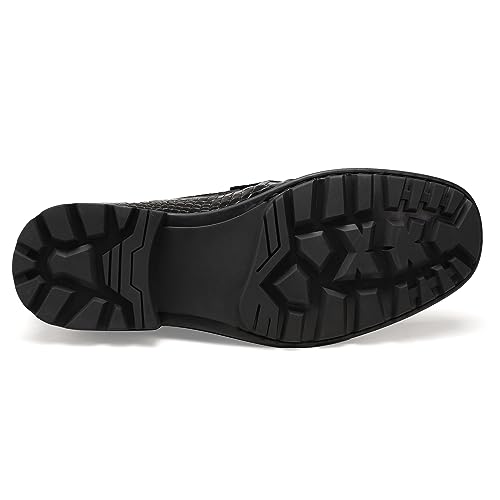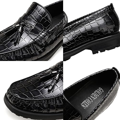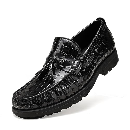 Men's Tassel Dress Shoes, Casual Crocodile Printed Tassel Loafer Handmade Slip-on Penny Loafer for Mens