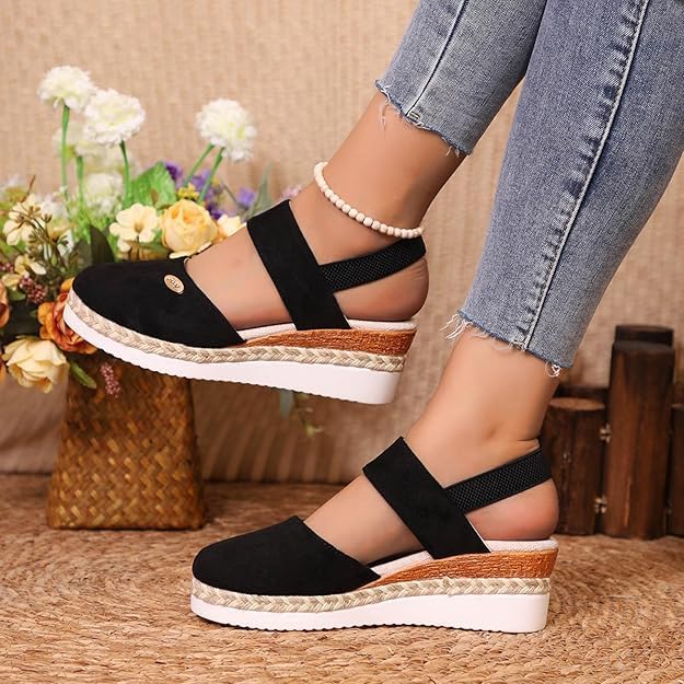 Closed Toe Platform Wedge Sandals, 2025 Espadrilles Wedges for Women Heel Casual, Women's Espadrilles Dressy Sandals, Comfortable Anti Slip Summer Shoes with Adjustable Buckle Ankle Strap